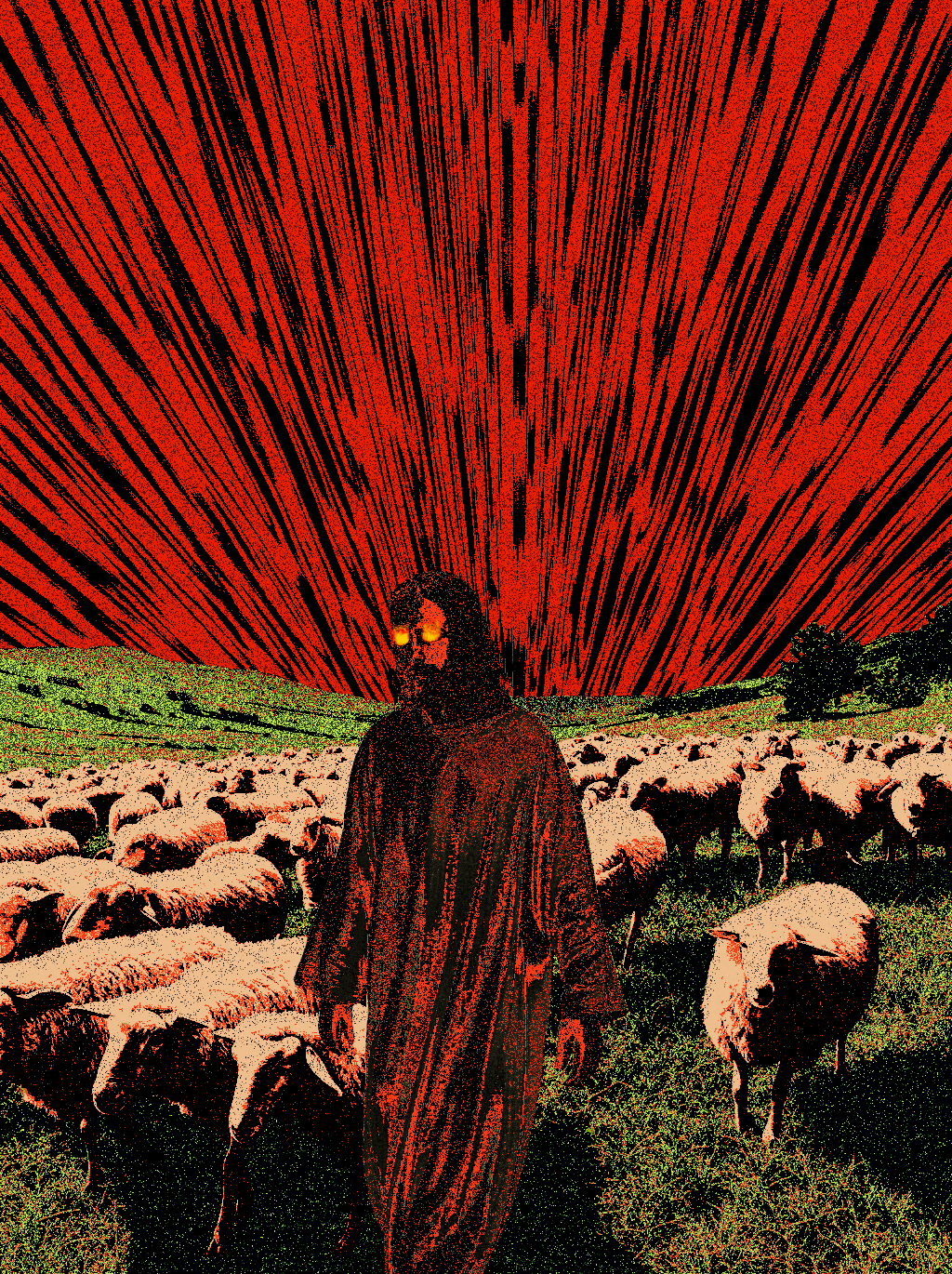 SHEPHERD explores the timeless dynamic of faith and leadership within contemporary digital transformation. The work questions the psychology of devotion when individuals seek both material gain and spiritual meaning in rapidly evolving technological landscapes, reflecting on how promises of transcendence create new forms of dependency and the eternal tension between true shepherds and false prophets.